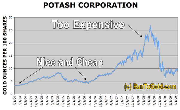 I did state that we do not know how low Potash Corporation will go but that I would consider purchasing it for between 3-5 ounces of gold per 100 shares. There were some interesting acknowledgements when I briefly explained my reasoning for performing the mental calculations of value using the golden currency.