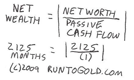 Net wealth is a function of three variables, (1) number of months, (2) standard of living and (3) without 'working'. To determine your 'standard of living' you need to examine your current expenses to determine your total monthly expenses. Once your passive income or passive cash-flow exceeds your expenses then your net wealth can approach infinite but keep in mind that managing your financial condition will always require some of your time and attention.