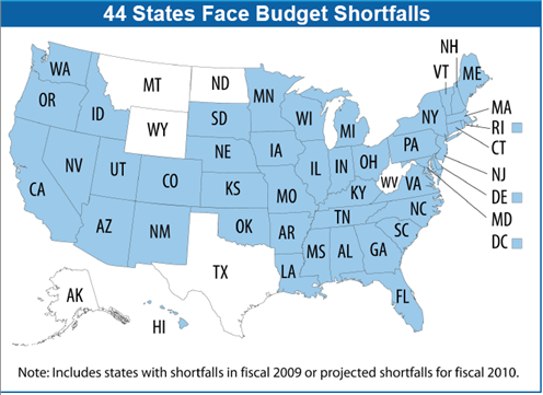 Mish has provided a great commentary on the Center on Budget and Policy Priorities report that State Budget Troubles Worsen. In essence 44 states face budget shortfalls and they are estimated to persist until 2011. I think the states will be lucky to see the economic pressure ease by then. Most people do not understand the scope of the FRN$ Ponzi Scam.